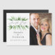 Folhas de dólar de prata verde folhagem casamento save the date magnético com tipografia manuscrita projetada para ser rapidamente e facilmente personalizada para os detalhes do seu evento.