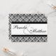 O convite formal branco e preto deste damasco bonito é completamente customizável. O design do cobrir tem o grande texto para os nomes dos noivos e o verso tem a abundância da sala para sua informação do casamento. Não esqueça os acessórios de harmonização!