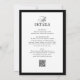 Simplifique seu planejamento de casamento com este elegante convite multifuncional com um código QR integrado para RSVPs fáceis. Este clássico design de luxo é perfeito para casamentos formais de dinheiro velho, eventos de gravata negra e comemorações modernas. O código de QR digitalizável e o layout elegante o tornam prático e sofisticado. Totalmente personalizável com detalhes de casamento, cores e link de site opcional.