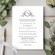 Convite Elegante de Casamento com delicado monograma desenhado à mão com iniciais de casal. Design simples, elegante e na moda. Monograma e texto a preto, sobre fundo branco. De volta em branco. Capacidade de alterar a cor de fundo frontal e/ou traseira para qualquer cor que você quiser, selecionando o botão "Editar usando a Ferramenta de Design". Palavras com nomes de pais. O mesmo design sem nomes de pais também está disponível. Parte da nossa coleção "Elegance Minimal Black and White Monographic Wedding" com uma variedade de produtos de coordenação disponíveis. Visite a coleção inteira em: https://www.zazzle.com/collections/elegance_minimal_black_and_white_monogram_wedding-119677926842478970