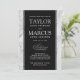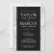 A tipografia branca clássica e moderna em uma banda vertical de preto escalopado contra um clássico fundo de mármore faz deste convite de casamento uma escolha elegante para a sua celebração de gravata negra. Personalize o texto branco com todos os detalhes do seu casamento e envie um convite que seus hóspedes adorarão receber e colocá-los para o grande dia.