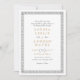 Este convite para casamento simples e formal apresenta uma moldura rústica decorativa com a letra tradicional em cinza neutra e cor dourada, e um lindíssimo padrão vintage no verso, elegante e clássico, excelente para casamento vintage, casamento clássico e casamento antigo! A cor branca de fundo pode ser alterada para corresponder ao tema do casamento, basta clicar no botão "Personalizar!" e editar a cor na seção "Cor de fundo impressa". Veja todas as peças correspondentes nesta coleção "casamento vintage clássico" abaixo.