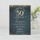 Os realces do confete de brilho dourado e maravilhoso na borda superior e inferior. Todo o texto é ajustável e fácil de mudar para as necessidades do seu próprio partido. design de modelo de 50 anos elegante excelente. Convite formal. Salve as datas disponíveis no compro. fundo de rusticidade da madeira azul para convites neutros em termos de gênero.