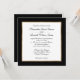 Um convite de casamento preto e branco com um cesto de ouro falso e uma fronteira negra.