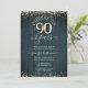 Os realces do confete de brilho dourado e maravilhoso na borda superior e inferior. Todo o texto é ajustável e fácil de mudar para as necessidades do seu próprio partido. design de modelo de excelente de 90 elegante de. Convite formal. Salve as datas disponíveis no compro. fundo de rusticidade da madeira azul para convites neutros em termos de gênero.