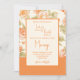 Aqui está um belo convite formal para o casamento, formado com flores laranja e uma sólida banda de cor laranja no fundo para enviar para a família e amigos para os vossos núpcias. Atualizar facilmente todo o texto na frente. A parte de trás segura um pedúnculo de flor de laranja solteiro para uma beleza acrescida.