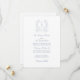 Este convite para o casamento contém iniciais fechadas por um riso botânico romântico com letras elegantes em uma tonalidade azul empoeirada. Este item faz parte da nossa coleção de convites Kami K310, visite nossa loja para ver itens coordenadores.