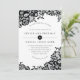Convite Formal para Casamento de Chic Black Lace Moderno| Suíte De Casamento De Chic Black Lace| Convite de casamento branco e preto elegante com flores pretas e folhas no estilo chic lace. Estilo de fonte formal sofisticado, com tipografia clássica. Convite de casamento Trendy.***NOTA: Este convite não é feito de renda real. Se você alterar a fonte ou o tamanho da fonte, ela pode alterar a forma como o papel de carta impressão. Ele será impressão como você vê no seu monitor. Não verei a sua placa depois de a solicitar e o Zazzle NÃO editará nada (digitar, alinhamento, etc.).