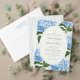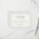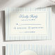 Um convite de confirmação de presença formal e elegante com listras azuis preppy como fundo e tipografia elegante e atemporal.