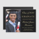Anúncio magnético do formandos negro elegante com uma fotografia do formando, seu nome e ano de aula numa escrita em ouro na moda e na sua universidade, grande e honraria na tipografia do ouro moderna.