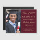 Anúncio magnético do formandos vermelho-burgundy com fotografia do formando, seu nome e ano de aula numa escrita em ouro na moda e na sua universidade, major e honra na tipografia de ouro moderna.
