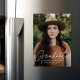 Comemore o formando com nosso cartão magnético de graduação vertical de fotos na moda. O ímã de lançamento da graduação exibe a foto vertical do formando com "Formando" em uma cobertura branca de script de caligrafia moderna. Personalize o ímã de graduação moderno adicionando o nome do formando, o nome da escola e o ano de graduação. O design é perfeito para segundos graus e formandos universitários.
