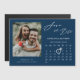 Azul Moderno |Placa magnética do Script Elegante "Save the Date" de fundo ceruliano com um Calendário Personalizado com uma bela Foto. Diga à sua família, amigos e colegas que marcou uma data para a celebração do seu casamento com esta carta elegante. Para mover o marcador Ring > clicar em azul ‘Personalizar’ > clicar em azul ‘Editar Usando a ferramenta Design’ abaixo, você encontrará o marcador Ring - no canto superior esquerdo e arrastar o marcador Ring até a data de casamento. Todos os textos estão pré-organizados para que você personalize fácil e rapidamente com seus próprios detalhes.