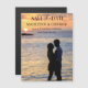 Um moderno salve a data em um formato de cartão magnético exclusivo projetado para acomodar sua foto favorita do noivado vertical. "Salve a data" aparece no topo da sua foto em blocos negros e letras de script, com seus nomes, data de casamento e local do casamento embaixo. Use a linha de texto adicional para compartilhar seu site de casamento ou detalhes adicionais.