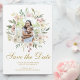 Um elegante círculo de cor d'água, cor-de-rosa pincelada e rosa de creme de marfim neste adorável verão Salve o convite fotomagnético Date. As manchas botânicas do eucalipto verde-sábio saem decoradas em meio ao conjunto de flores de pêssego acima do belo guião de ouro antigo. A pincelada de volta a esta carta adiciona um toque romântico. Estes convites delicados são perfeitos para uma adorável cerimônia de jardim com uma recepção ao ar livre. Adicione sua própria fotografia de noivado.
