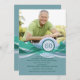 Um design bonito, contemporâneo, com energia e estilo. Abstrato espirra de azul e verde interagem em torno de uma guia circular com o ano de sua escolha. Basta adicionar sua foto favorita para torná-la sua. Adequado para ambos os sexos.O cartão é fácil de personalizar com seu texto, fonte, cor da fonte e escolha de seis tipos de papel.