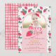 O convite para morango da festa de primeiro aniversario de uma garota bonita, com morangos ilustrados manualmente e motivos para aquarelas. Esta festa de aniversário de primeira baga é apenas para as mais doces das meninas. Verifique a coleção de cheio para mais opções de design e decorações de festas e favores.