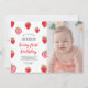 Um convite temático de morango doce para a festa de aniversário de morango da sua filha. Apresentando ilustrações de morango de aquarela - você pode personalizar com sua própria foto e texto!