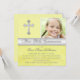 Convide todos os seus amigos e família para a primeira Comunhão Santa da sua filha com este bonito convite amarelo e prata da Primeira Comunhão com uma Cruz de prata e uma área de modelo para que você carregue a foto da sua filha. A escolha do papel e todo o texto é personalizável. Se você precisar de qualquer outro item nesse estilo de design, como cartões de agradecimento, cartões de agradecimentos de fotos ou qualquer outro item para fazer com que este dia especial seja especial, envie um e-mail com sua solicitação para niteowlstudio@gmail.com.