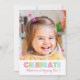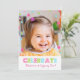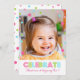 Personalizável modelo de foto, meninas, segundo convite de aniversário no verde limão, turquesa aqua azul, rosa quente e fúcsia com texto de celebração divertido e padrão de confetti. Personalizável para qualquer idade.