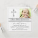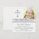 Convide todos os seus amigos e família para a primeira Comunhão Santa da sua filha com este bonito e branco e prateado puro e listrado Primeiro convite da Santa Comunhão com uma Cruz de prata e uma área de modelo para você carregar a foto da sua filha. A escolha do papel e todo o texto é personalizável. Se você precisar de qualquer outro item nesse estilo de design, como cartões de agradecimento, cartões de agradecimentos de fotos ou qualquer outro item para fazer com que este dia especial seja especial, envie um e-mail com sua solicitação para niteowlstudio@gmail.com.
