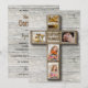 A ilustração da Moderna Primeira Comunhão, com uma cruz de madeira, com imagens relacionadas à comunhão, num fundo rústico. Facilmente para alterar as duas fotos de amostra do comunicante com suas próprias fotos para personalizar o produto.
