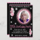 Meninas Personalizadas 12 Foto de Aniversário Convite de Rosa e Preto