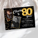 Convite Fotográfico de 80 de Aniversário para Balões Dourados Pretos