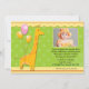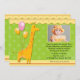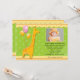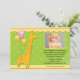 Um adorável design unisexo com uma girafa com balões. O fundo verde, bolinhas, tem um brilho amarelo/alaranjado, redimensionado e apresenta a foto da criança de aniversário.O cartão é fácil de personalizar com seu texto, fonte, cor da fonte e escolha de seis tipos de papel.