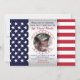 convites de festas de fotos de soldados militares da bandeira patriótica - Foto de soldado ou militar centrada em um círculo com estrelas vermelhas e azuis na fronteira de um fundo metálico falso de prata. Bordado à esquerda com estrelas de bandeira americana e à direita com listras vermelhas e brancas de bandeira americana. Ele lê 'Por favor, junte-se à nossa celebração do herói de casa de boas-vindas' em azul com classificação e nome personalizados abaixo em um script de cor vermelha e informações de boas-vindas do partido doméstico abaixo em vermelho e azul correspondentes. A parte de trás coordena o padrão das estrelas azul e branca sobre fundo vermelho correspondente.Nota: Todas as imagens são impressas. Não é metal real. convites de festas militares de boas-vindas. Clique na opção Personalizar para alterar cores de texto, tamanho e estilos de fonte. Visite nosso compro online Zazzle.com/angela65 para ver mais convites militares para fotos.