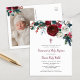 Barato com impressão personalizada de uma menina Baptism. Este bonito design de Natal tem uma borda floral de aquarelas com flores de burgundy e creme, bagas sagradas e verde de inverno. Personalize a design com os detalhes da festa Baptism do seu filho. O verso tem espaço para uma fotografia com o seu endereço de devolução impresso para facilitar a correspondência. Clique em Personalizar para escolher qualquer cor de fundo e editar as fontes e cores do texto para criar um convite exclusivo de Natal para a sua bebê.