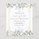 Um bonito convite de casamento com bonito sábio e lilac deixa que cai sobre um elegante quadro de ouro que envolve seus detalhes de casamento, em texto elegante clássico e sua foto especial no verso. Projetado por Thisnotme©