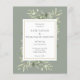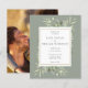 Apresentando delicadas folhas de aquarela em um fundo verde-sábio, este convite de casamento botânico pode ser personalizado com sua foto e informações especiais sobre o dia do casamento. Projetado por Thisnotme©