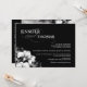 Convites de casamento floral contemporâneos lindos, ousados e dinâmicos com foto opcional. Flores brancas e pretas de arte-de-ponta-olhos com tipografia elegante e estilo letterpress, e acentos retrô-swash com destaque para noiva e noivo. Perfeito para casamentos à noite e à luz de velas, para a cerimônia formal tradicional da igreja, ou para casamentos casuais de jardim urbano em qualquer estação — primavera, verão, outono, outono e inverno. Esse estilo certamente agradará a noiva moderna, mas uma mistura de estilos sofisticados faz uma declaração elegante para os casais modernos — o olhar do luxo a um desconto por contrato e o preço do barato para noivas frugírias em um orçamento. Personalize-o para alterar as cores e estilos do plano de fundo ou da fonte. Entre em contato conosco se você quiser que este design seja modificado para corresponder ao tema de cor da sua festa noiva. Esse modelo fácil de usar também pode ser personalizado para qualquer ocasião especial. Entre em contato conosco para obter assistência se precisar de ajuda para criar seus próprios convites únicos. Outros tamanhos, estilos, cores e acessórios disponíveis mediante solicitação.