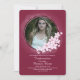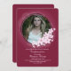 Um belo e desenhado conjunto de cerejeiras rosa floresce a janela de fotos redondas deste convite moderno. Adequado para qualquer idade e a maioria das celebrações. (FP)