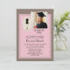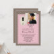 Este cartão é o convite perfeito para um formando de uma escola de moda. Perfeito para Design de moda, Merchandising de moda ou campo de estudo semelhante. Apresenta uma silhueta de manequim de moda num oval e um padrão no fundo. Ele tem uma mistura de design de padrões modernos com uma borda escalop clássica. Apanhando os olhos e elegante. Adicione sua própria imagem e texto.