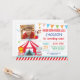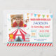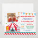 Convite de aniversário de Carnaval com foto personalizada. Menino 1rua Primeiro Convite de Aniversário. Festa do Circo. Fundo Branco. Para mais personalização, clique no botão "Personalizar" e use nossa ferramenta de design para modificar este modelo.