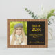 Este convite de festa de formatura de tendências e chic tem um quadro de grãos de madeira em torno de uma foto do seu formando e informações sobre a sua celebração de graduação. Adicione uma fotografia do seu formando a este convite de festa de formatura clássico. Texto e foto são PERSONALIZÁVEIS. MAIS DESIGNS DE GRADUAÇÃO: