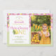 Celebre seu raio de sol com este vibrante convite de aniversário de limonada rosa! Apresentando gráficos cítricos alegres, bordas moles escaladas e um slot de fotos para sua aniversariante, este design traz encanto e doçura no verão para a primeira festa de aniversário do seu bebê. Texto totalmente editável facilita a personalização.