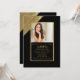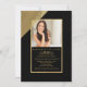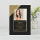 Um convite fotográfico com muitas pizzaz. A peça dramática de ouro contra preto dá uma impressionante impressão. Use-o para anunciar uma formatura, para celebrações de aniversário e qualquer ocasião feliz.O cartão é fácil de personalizar com seu texto, fonte, cor da fonte e escolha de seis tipos de papel.