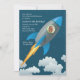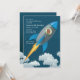 Divirta-se com uma festa e comece com nosso Convite para Viajantes Espaciais, com cinzas e foguetes azuis em voo de médio. Uma janela de fotos redondas mostra o rosto do seu sorriso. (FP)
