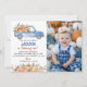 Celebre o seu primeiro aniversário com este delicioso convite de Pumpkin Blue Truck! Apresentando um caminhão azul branco cheio de abóboras vibrantes, este personalizável convite fotográfico captura a essência das festividades do outono. Perfeito para uma festa de aniversário com tema de outono, ele permite que você adicione um toque pessoal com a foto do seu filho e os detalhes da festa. Fácil de editar e compartilhar, é uma escolha ideal para os pais que desejam criar convites memoráveis que reflitam a alegria do marco de seus filhos.