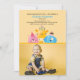 Estão prontos para uma festa - um gato rosa, uma girafa amarela e um cachorro azul. Apenas adicione sua foto embaixo da cobertura escalpada e faça a celebração funcionar.O cartão é fácil de personalizar com seu texto, fonte, cor da fonte e escolha de seis tipos de papel.