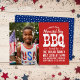 Legal convite de festas de churrasco do Dia Memorial. Design apresenta uma tipografia vintage angustiada. Adicione sua foto e detalhes da festa com espaço no vazio para fotos ou texto adicionais no verso. Use as ferramentas de design para escolher qualquer cor de fundo, adicionar mais fotos e texto, editar fontes e cores para criar uma única de um tipo de convite de festas.