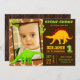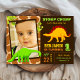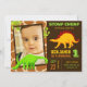 Amaze seus convidados com este legal primeiro convite de aniversário com dinossauros coloridos brilhantes com tipografia vibrante sobre um fundo marrom. Basta adicionar os detalhes do seu evento neste modelo fácil de usar e adorar este cartão com a foto favorita do seu filho para torná-lo um convite generoso. Sacudir a placa para revelar uma textura rústica de madeira na parte traseira da placa.