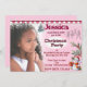 Festa de Natal das Meninas Personalizadas, Foto de Convite Rosa, com corações e boneco de neve Personalize com sua própria foto, nome, endereço do local, número de telefone RSVP. Disponível como convite impresso ou download digital imprimível.