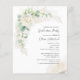 Um convite à festa de formatura moderno para fotografia, que inclui o eucalipto botânico verde e a grama pampas, com o layout moderno em fundo branco. Altere facilmente a fonte ou a cor de fundo e adicione a sua fotografia clicando no botão "Personalizar" para criar um tipo de convite para a sua festa de formatura