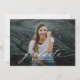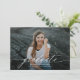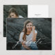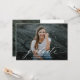 Este anúncio de graduação apresenta uma grande foto frontal de cheio com uma cobertura de script de caligrafia e uma segunda foto no verso, juntamente com seu convite para festa de formatura. Os elementos traseiros podem ser removidos clicando no botão para editar mais detalhes.