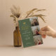 Espessura de 18 pt / Gramatura de 120 lb. Branco suave, textura delicada.