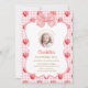 Comemore seu aniversário de amora com este adorável convite. Apresentando um padrão de morango doce no fundo com um arco cor-de-rosa, este encantador convite dá o tom perfeito para uma celebração divertida e frutífera. Cores vibrantes e um sentimento fresco e alegre fazem dela uma escolha irresistível para o dia especial do seu bebê. Personalize com os detalhes da sua festa e prepare-se para uma celebração doce de fruta.